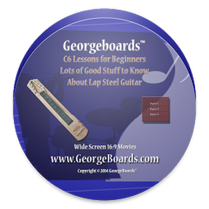 Georgeboards™ C6 Lessons for Beginners Lots of Good Stuff to Know About Lap Steel Guitar Calling all Beginners to learn Lap Steel Guitar! This is the Place to Start Learning C6th Lap Steel Guitar.Let GeorgeBoards™ help you make the Transition to Lap Steel Playing. Lap Steel & Non-Pedal Steel Guitar Instructions for Beginners using 6 or 8 Strings. Our Lap Steel Guitar Instructions are among the finest offered world wide. Over head camera angle helps you play along with the instructor. We get you playing your lap steel guitar right away, and having a lot of fun too. 23 movies on DVD Set, Blu-Ray disc, or Online teach you: • String Gauges • Tune Up C6 • Picks & Grips • Bar Control • Blocking • Counting Up • Picking • More Picking • D Scale • Linear Scales • 1-4-5 Scales • Blues Lick • 7th Sounds • Hank Sounds • More Picking Yet • 1-4-5 -- 2 String Slants • More 2 String Slants • 1-4-5 -- 3 Note Slants • Diminished Slants • More Diminished • E - A Scales - Zero Position • Blues Pattern • Use Them All Navigate through lessons with your remote and pause, rewind, and replay as needed for a specialized learning experience. Wide screen: 16:9 Playing time: 128 min DVD - NTSC standard format only. Plays in most PAL international players Blu-Ray plays in all Blu-Ray players. Online lessons require ability to view Flash (swf) files. www.GeorgeBoards.comWhat's new in Good Stuff to Know About C6 3.0